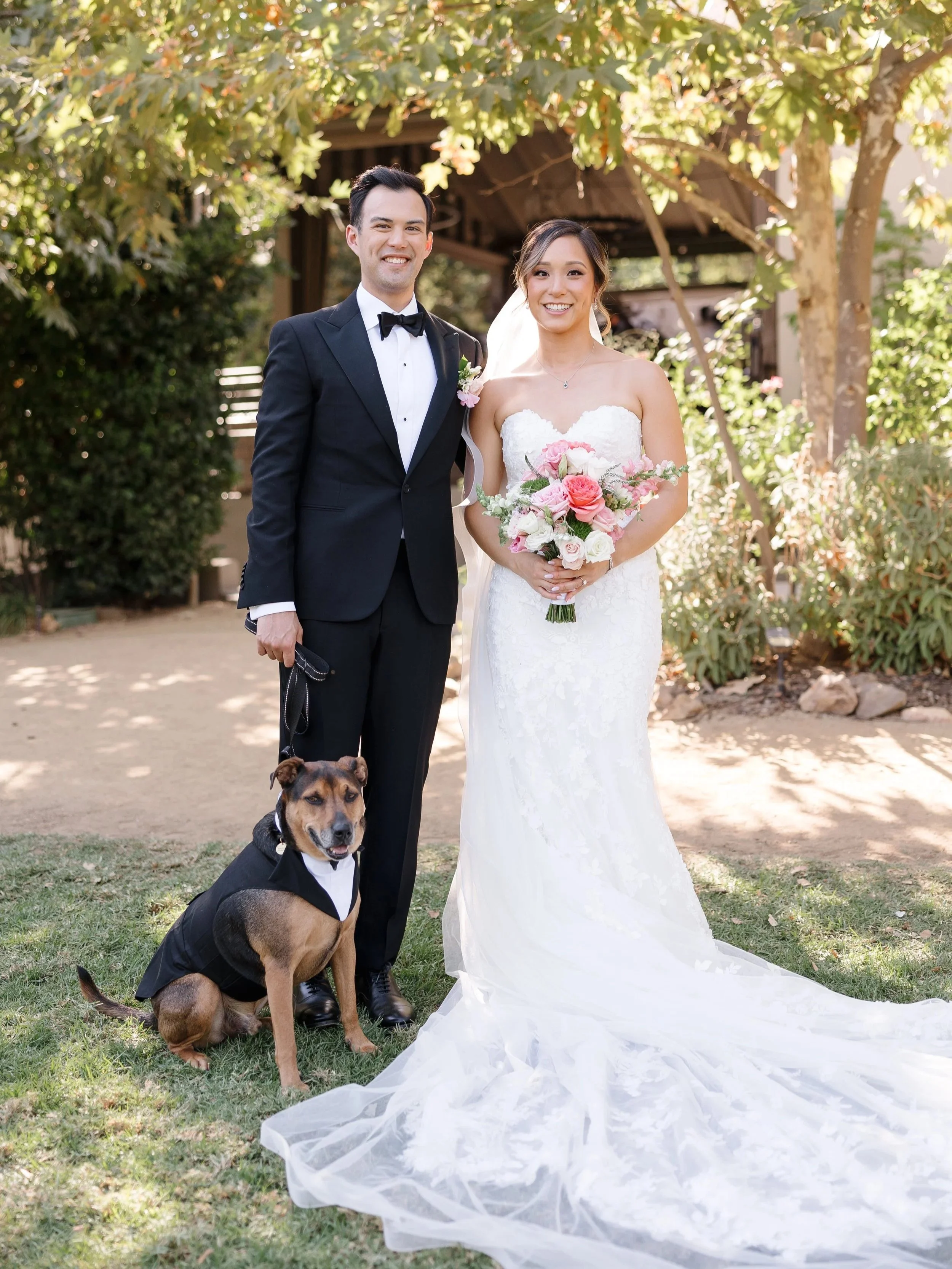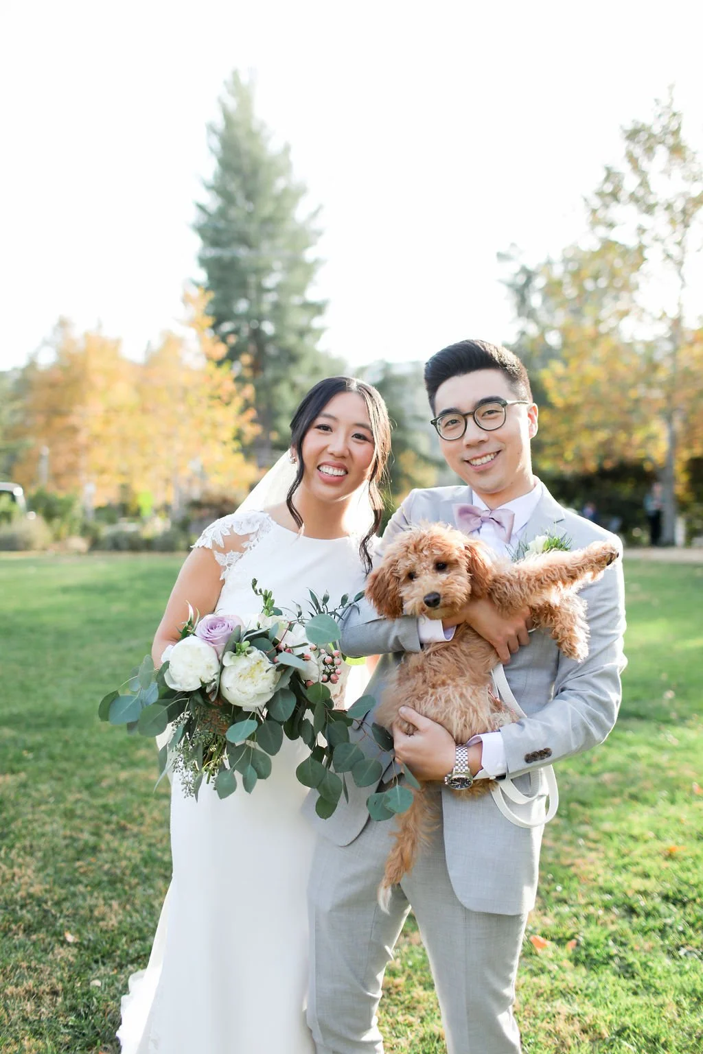 Even if your pet doesn't make it into the ceremony itself, plan a 15-minute portrait window with them before guests arrive (or right after the ceremony). Malibou Lake gives you a dozen beautiful backdrops — the white-columned breezeway, the oak-lined paths, the wildflower edges of the lawn — and your dog will be calmer earlier in the day, before the crowd builds.